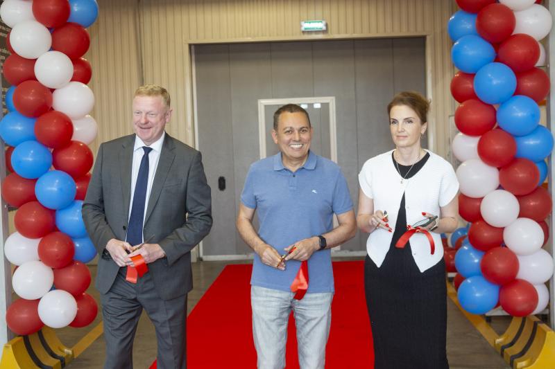 Почетные гости на церемонии открытия перерезали Символическую красную ленту.