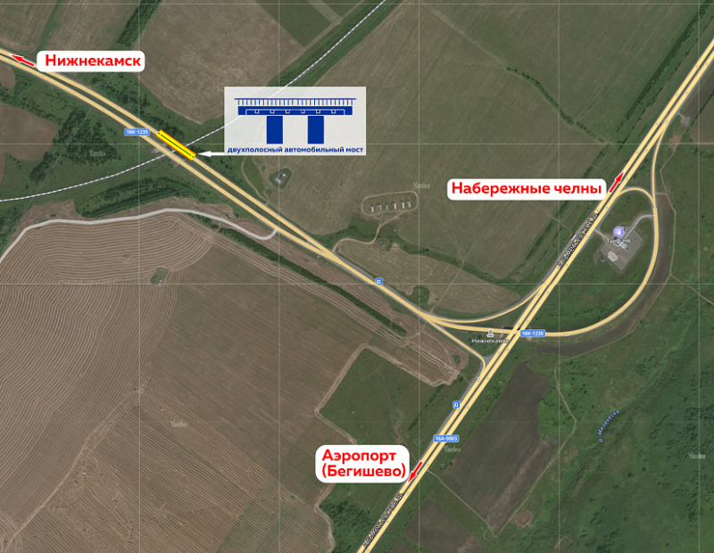 На трассе в сторону Нижнекамска в районе остановки «Поворот на Иштеряково» «Алабуга» построит на перекрестке развязку стоимостью 2 млрд рублей. Этот участок входит в перечень мест повышенной концентрации ДТП, и растущий трафик мог бы усилить проблему. Ликвидация поворота налево поможет ее решить, считает Зайченко.