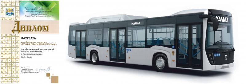 Городской низкопольный автобус НЕФАЗ-5299-0000040-57 с газовым двигателем стал победителем в конкурсе «Лучшие товары Башкортостана».