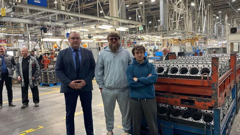 На производствах "КАМАЗа" в Набережных Челнах накануне побывали ведущие популярных видеошоу об автомобилях "Разгон" и "Рыцарь Дорох". Комик Денис Дорохов и блогер Денис Михеев пообщались с заводчанами, осмотрели производственные линии автомобильного завода и завода двигателей, а также поводили КАМАЗы поколения К5 на полигоне Научно-технического центра.