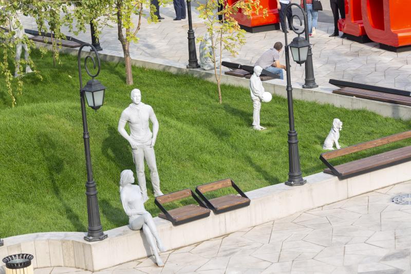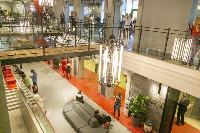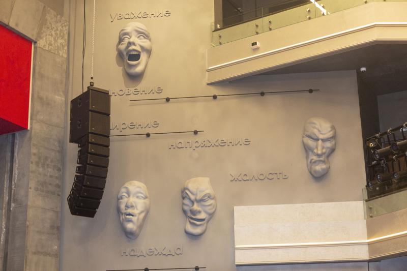 В фойе пришедших театральных любителей встречают скульптуры. Композиция построена таким образом, что у гостей может возникнуть ощущение, что это они вышли на сцену, а скульптуры, расположенные напротив, – это зрители, сидящие в первом ряду. Сами «Мастеровые» расположились в четырехэтажном здании. Интерьер, по словам заместителя директора по общим вопросам Наталии Матиос, это комбинация бетона, входящего в индустриальный стиль, в котором построены Челны, и элементов классики, ведь театр – это классическое искусство. «Красный – это цвет «Мастеровых», то есть цвет молодости. Мы вспоминаем о той театральной студии, которая родилась в 1975 году, ее открыл Юрий Колесников. Черный цвет – это элегантность, тайны, загадки, которыми наполнен театр, а серый – это индустриальный цвет».