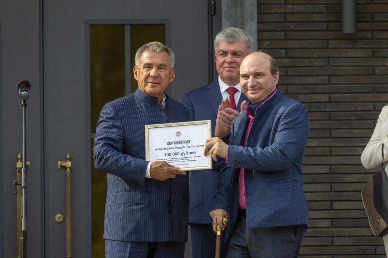 В завершении торжественного мероприятия Ильнар Гайсин передал символический ключ директору театра Армандо Диамантэ. Также был вручен сертификат на укрепление материально-технической базы на сумму 100 тысяч рублей. Затем почетные гости отправились на экскурсию по новому объекту.