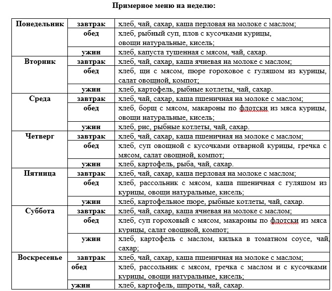 Питаться задержанные в изоляторе временного содержания и спецприемнике будут три раза в день – в шесть часов утра, в полдень и в 5 часов вечера. Завтрак рассчитан на 30 минут, а остальные приемы пищи – на 1 час. К примеру, в понедельник в рацион арестованных войдут хлеб, чай, сахар, перловая каша на молоке с маслом, рыбный суп, плов с кусочками курицы, овощи натуральные, кисель, а также тушенная капуста с мясом.