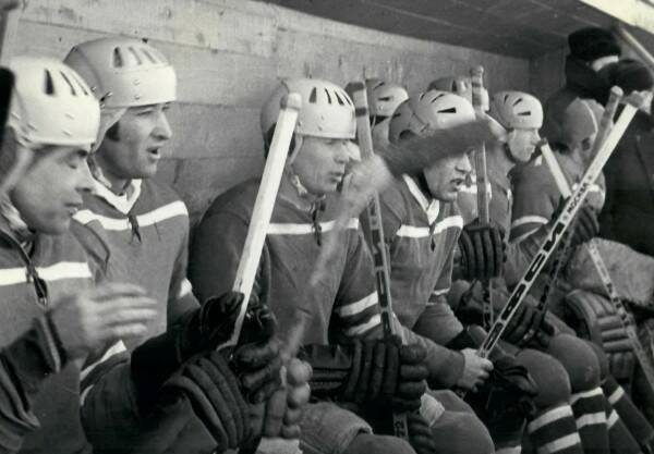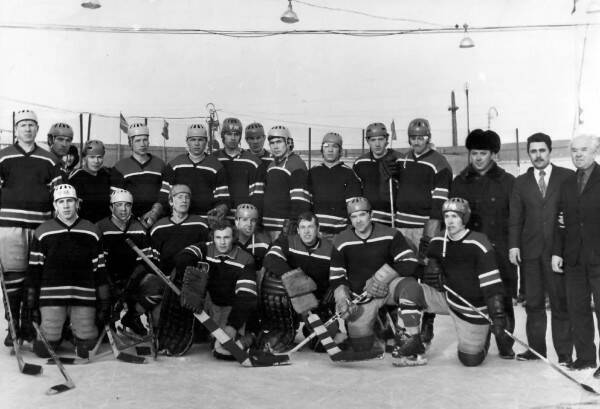 Третий справа стоит Гусев Виталий Михайлович – старший тренер хоккейного клуба «Торпедо», второй справа стоит Мингалимов Рифкат Ахметович – основатель спортивного клуба «КАМАЗ», переманивший в 1971 году Гусева В.М. из Казани в Набережные Челны.
