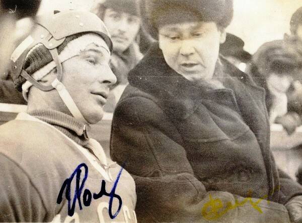 Внизу фотография с автографом Игоря Ромишевского – хоккеиста сборной СССР, участника исторического матча в Набережных Челнах.