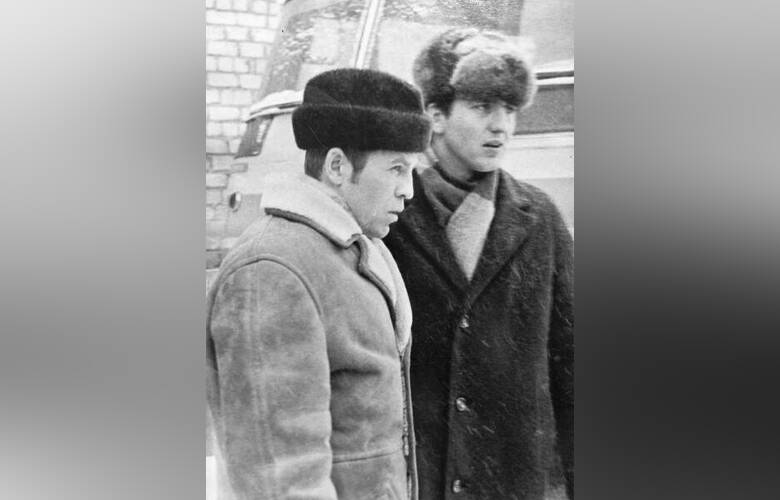 Слева направо: 1.Майоров Борис Александрович – двукратный олимпийский чемпион (1964 и 1968) в составе сборной СССР по хоккею, во время пребывания в Набережных Челнах в январе 1973 года. 2.Алман Александр Иванович – секретарь комитета ВЛКСМ КАМАЗА (1971-1972).