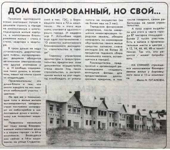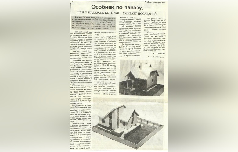А теперь настала очередь и заявленных газетных публикаций. Внизу вы можете прочитать статью из газеты «Рабочий КАМАЗа» от 5 марта 1992 года и узнать кто проектировал коттеджи в новых микрорайонах