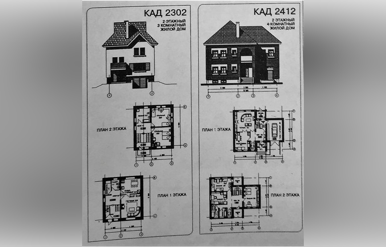 Внизу вы можете видеть проекты индивидуальных домов, разработанных сотрудниками фирмы «КАМАЗархдизайн», которые были опубликованы в газете «Вести КАМАЗа» от 25 октября 1994 года