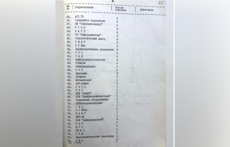 Внизу вы можете познакомиться с предварительной разнарядкой на выделение земельных участков среди камазовских подразделений.