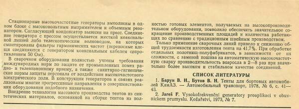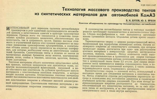 О технологии изготовления тентов из синтетических материалов рассказывалось на страницах журнала «Автомобильная промышленность», №11 за 1979 год.