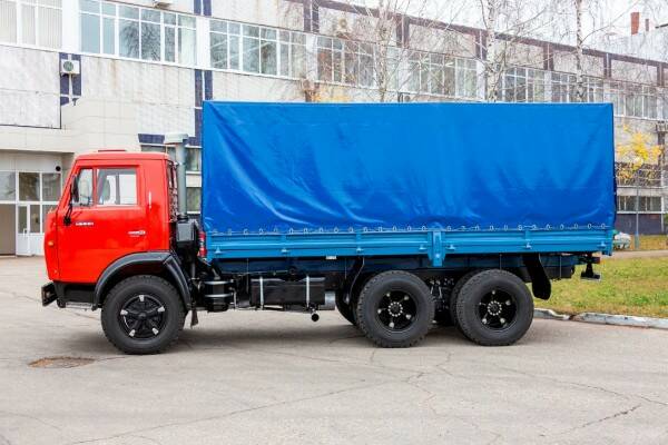 Согласитесь, что такие бортовые автомобили, как КАМАЗ-5320, лучше смотрятся с тентом, чем без него.
