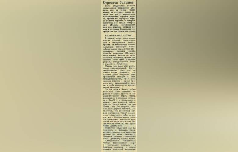 А как зарождался туризм в Набережных Челнах? Об этом рассказывает газета «Комсомольская Правда» от 14 февраля 1973 года.