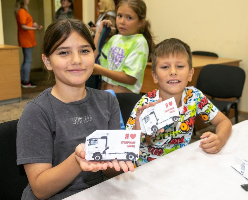 В перерыве были вкусняшки и художественное творчество. С помощью маркеров ребята рисовали на доске всё, чем впечатлились: логотип кузнечного завода, поковки, штамповочный пресс и, конечно, грузовик КАМАЗ.