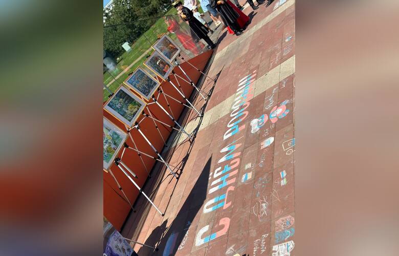 Неформальная часть здесь ограничилась игровыми зонами для детей и мастер-классами от картинной галереи с конкурсом рисунков на асфальте и выставкой репродукций пейзажей России.