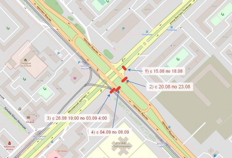 С 15 по 18 августа – перекрытие улицы Виктора Полякова со стороны 63 комплекса;