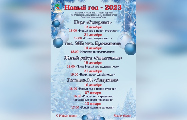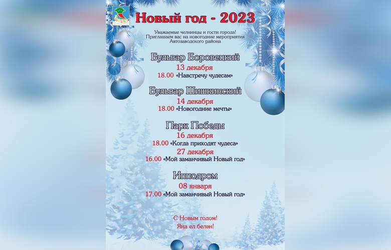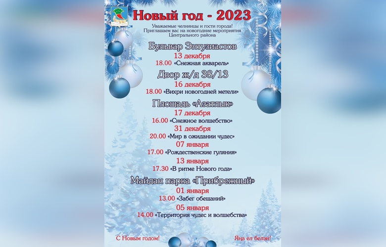 Халимов озвучил и уточненный график открытия городских Елок. Он представлен на афишах, каждая из которых посвящена активностям в конкретном районе города: