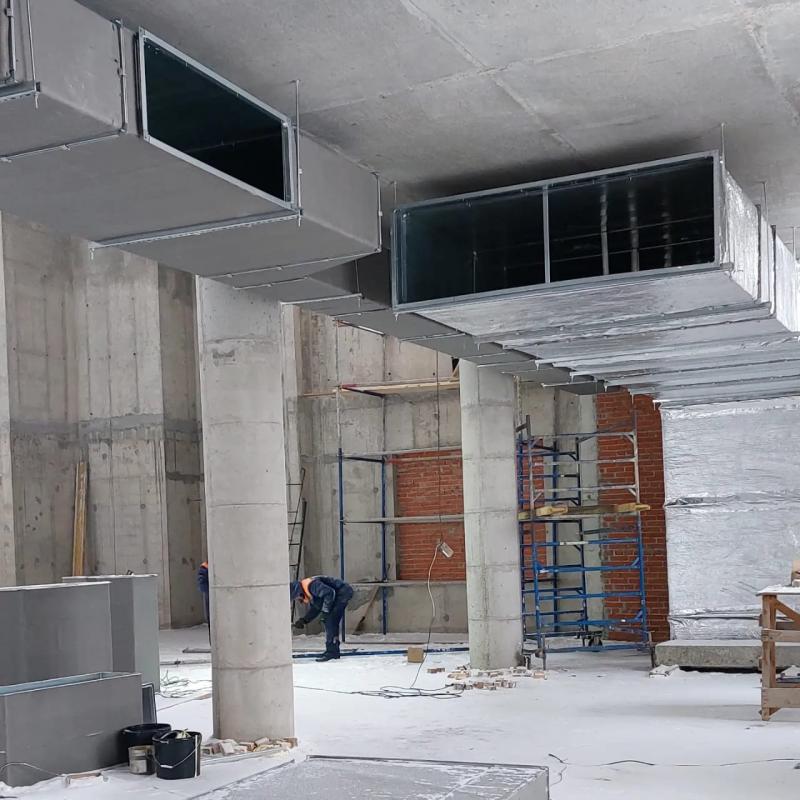 Помимо установки окон, на втором, четвертом и главном корпусе мечети ведутся работы по монтажу вентиляции и возведению двух больших минаретов. Также завершились работы по утеплению центрального купола и устройству наружной ливневой канализации.