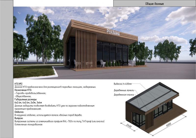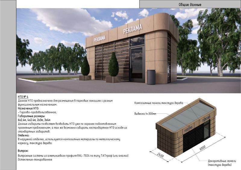 По новым правилам, НТО должны иметь металлический каркас с регулируемой высотой и кронштейны для возможных перемещений всей конструкции в будущем. Фундаменты запрещены. Цвет павильона должен соответствовать общему цветовому решению объектов на своей улице, основными цветами указаны белый, серый, черный и древесный. Деревянными ламелями предложено отделывать НТО снаружи. Всякая реклама, кроме вывески с торговой маркой, на стенах павильонов запрещена. В конечном счете муниципалитет предлагает владельцам НТО несколько вариантов внешнего вида: