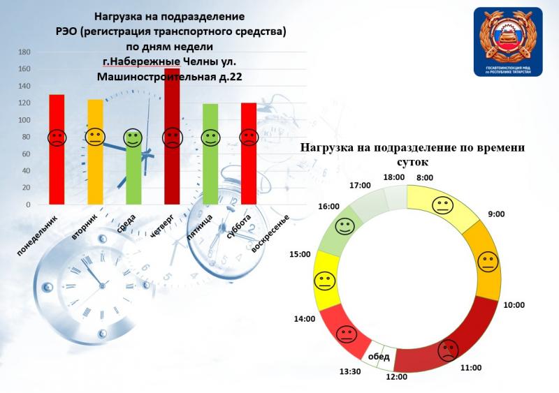 Наилучшее время для регистрационных операций с автомобилем в подразделении РЭО отделения ГИБДД по Набережным Челнам – это вторая половина дня, после 15.00. В этот период РЭО наименее загружен, как следует из инфографики, предложенной пресс-службой местной автоинспекции.
