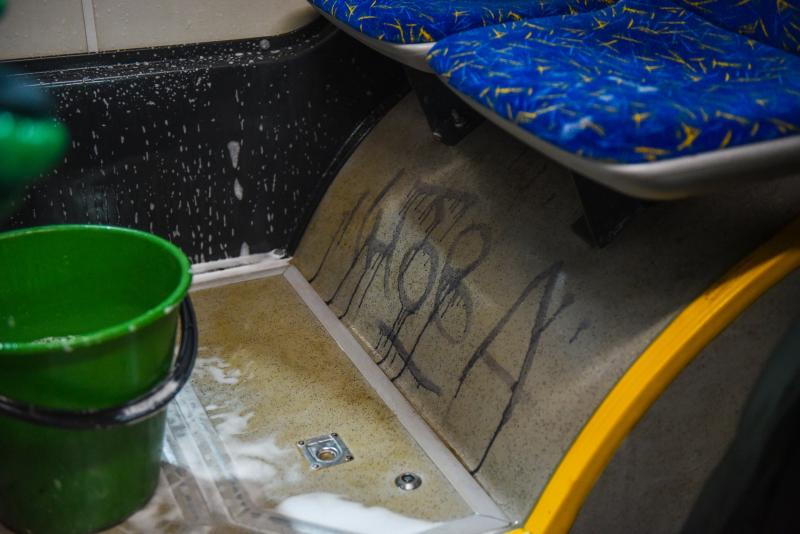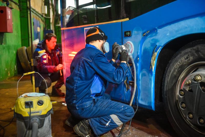 Кроме того, 4 автобуса ежедневно отправляют на химчистку, во время которой проводится влажная уборка салона, удаляются грязь, пыль, наклейки, жвачка и граффити. Также на текущем ремонте каждые сутки находятся 10 машин, еще 5 проходят кузовной ремонт.