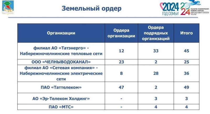 «Челныводоканал» отремонтирует за год 4 км сетей водоснабжения и 1,25 км канализации. «Набережночелнинские электросети» занимались ремонтом подстанций и кабельных линий на общую сумму 129 млн рублей. Вильданов напомнил всем, кто работает с подземными коммуникациями, что там, где они завершили работы и закопали трубы, нужно еще восстановить благоустройство.