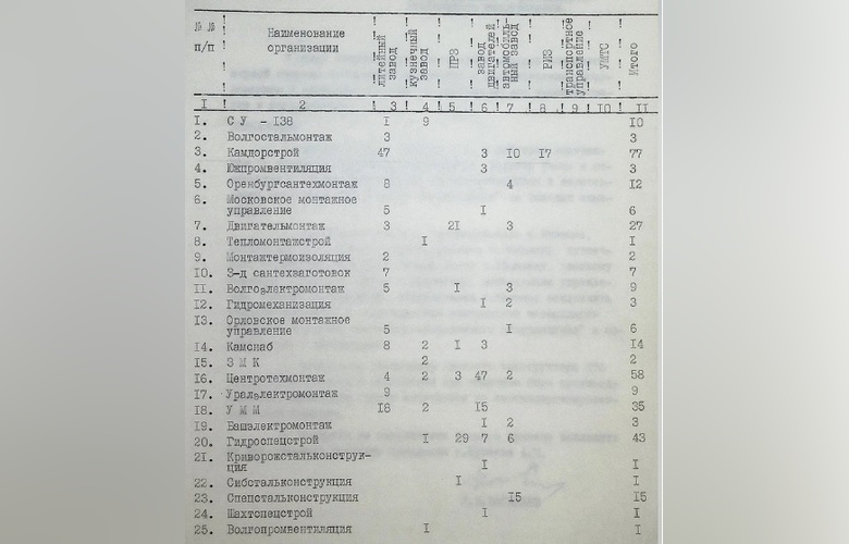 «Порой кадровый блок, принимая в штат КАМАЗа людей, тем не менее, значительную часть передавал в КАМГЭСЭНЕРГОСТРОЙ на помощь строителям – сначала на жилищное строительство, позже – на всё остальное. Причём это были не сотни. Тысячи камазовцев вливались в бригады строителей, - пишет Чухонцев. - В приказе №152 от 4 октября 1974 года вы можете познакомиться с перечнем строительных организаций, в которые направлялись работники "КАМАЗа"».