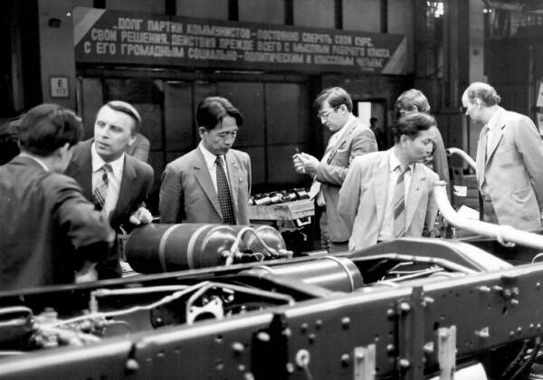 Внизу во время пребывания китайской делегации на заводах КАМАЗа. Предположительно, июнь 1984 года.