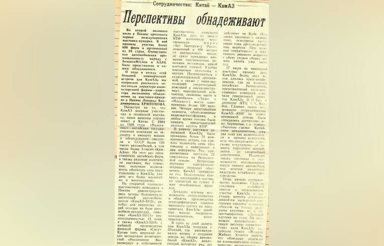 Прочтите полную радужных перспектив статью из газеты «Рабочий КАМАЗа» от 17 августа 1989 года, в которой помимо всего прочего говорится и о количестве камазовских грузовиков, поставленных в КНР в 1980-е годы.