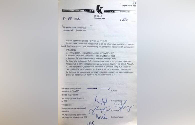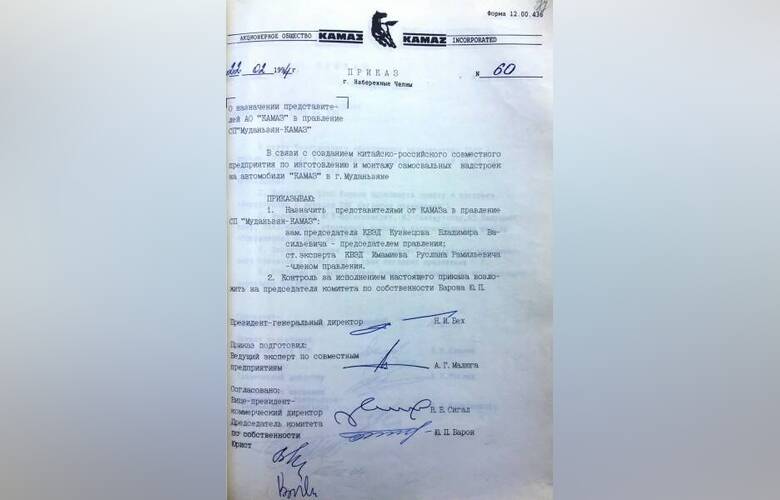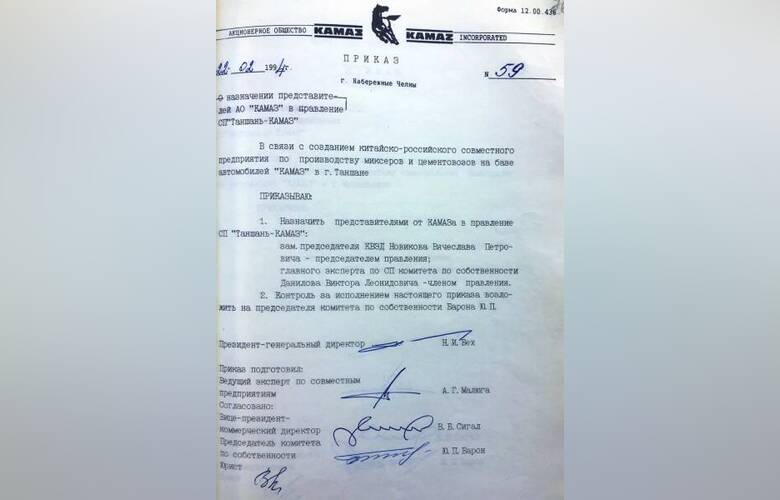 Внизу приказ генерального директора КАМАЗа от 5 июля 1993 года «Об организации совместных предприятий с фирмами КНР».