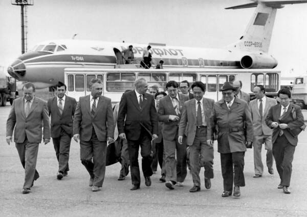 Слева направо: 1. Фаустов Василий Алексеевич – генеральный директор КАМАЗа (1981-1987). 2. Хусаинов Уел Галимович – первый секретарь Брежневского горкома КПСС (1984-1987). 3. … 4. Дергунов Василий Сергеевич – второй секретарь Татарского обкома КПСС. 5. … 6. … 7. Беляев Раис Киямович – секретарь Татарского обкома КПСС.