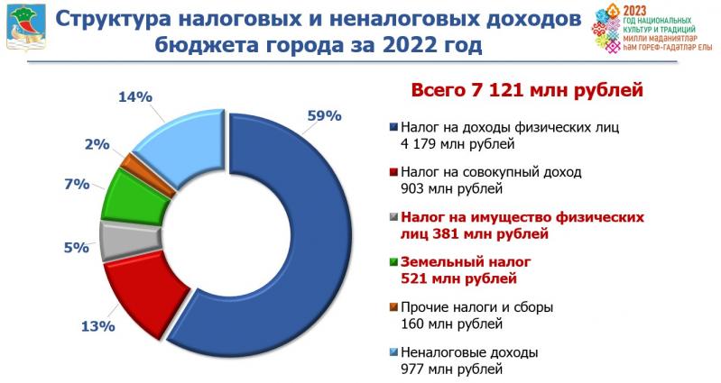 Наполнение же городского бюджета по итогам года превысило план аж на 19%, или на 1,15 млрд рублей. Фактический рост по сравнению с 2021 годом составил 1,87 миллиарда (14,5%). Всего город скопил 14,77 миллиарда, из них 7,65 миллиарда были получены из Казани и Москвы, и 7,12 миллиарда (48%) собраны на своей территории. В собственных заработках сбор налогов обеспечил 6,14 млрд рублей, а сдача земли в аренду и прочие, не столь существенные источники доходов дали еще 977 млн рублей (14%). В динамике относительно 2021 года это +18% межбюджетных трансфертов и +11% собственных доходов.