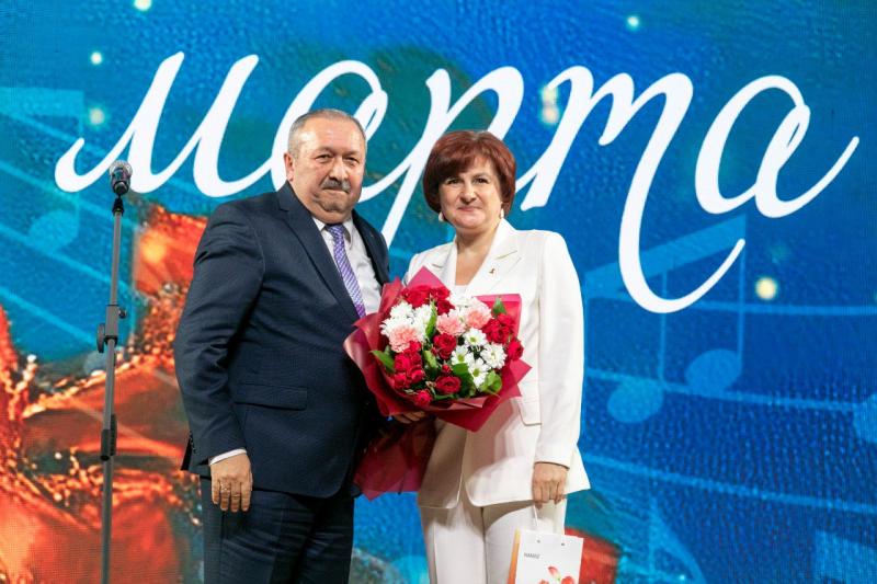 Со сцены женщин поздравили гендиректор компании Сергей Когогин, заместитель гендиректора Антон Сарайкин, председатель профкома Ильдар Шамилов и мэр города Наиль Магдеев.