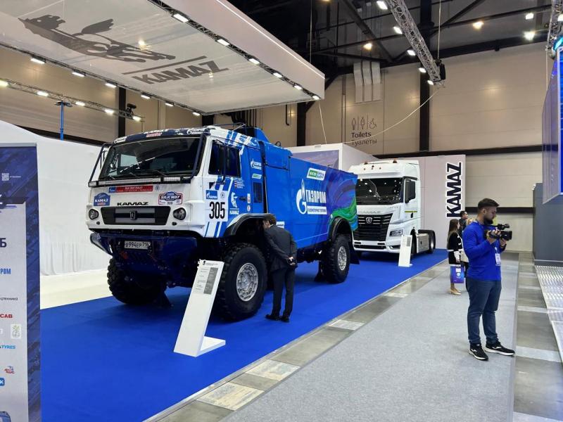 Также на стенде демонстрируются седельные тягачи К5, работающие на компримированном и сжиженном природном газе, с запасом хода до 1600 км и газодизельный гоночный грузовик команды «КАМАЗ-мастер». Именно на этом автомобиле экипаж Антона Шибалова в июле этого года одержал победу в ралли-марафоне «Шелковый путь-2025».