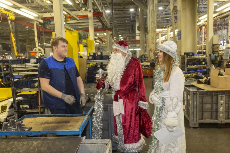 В каждом цеху завода двигателей, к примеру, имеются свои Дед Мороз со Снегурочкой. От станка к станку они ходят с поздравлениями, конфетами и загадками, вовлекая свою миссию непосредственных руководителей заводчан.