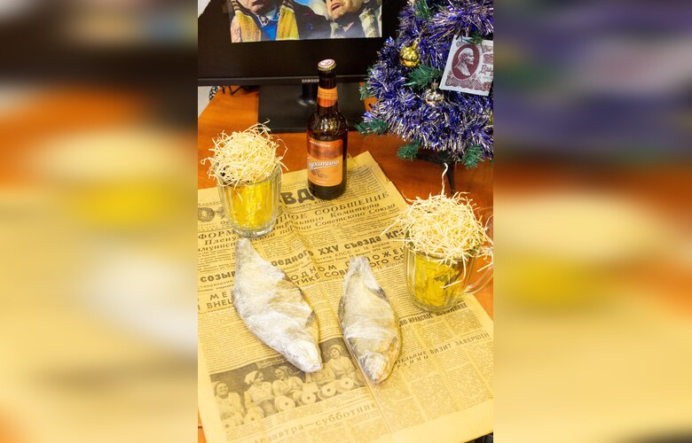 Офисы камазовских финансистов преобразились в ностальгическом ключе: здесь появились русская печь из «Морозко», веники с банными простынями из «Иронии судьбы», три белых коня из «Чародеев» и вобла с пивными кружками на свежем номере «Правды» - отовсюду сразу. В отдельных кабинетах прозвучали песни из «Карнавальной ночи» и «Джентльменов удачи».