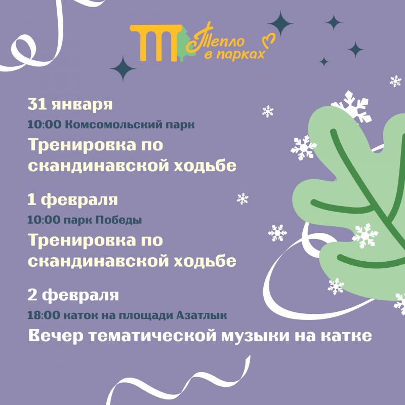 «Парки Набережных Челнов» опубликовали афишу зимних мероприятий, которые челнинцы и гости города могут посетить на этой неделе.