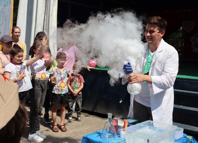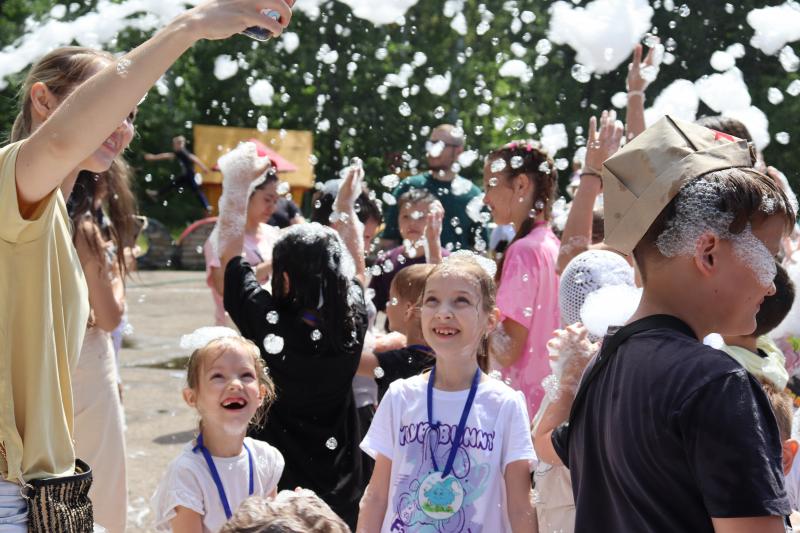 В гости заглянул профессор химии. Любопытные эксперименты с сухим льдом и кипятком вызвали восторг у публики. Дым сменился пеной. Зажигательная музыка, море фотографий, детских улыбок и смеха – да, пенная дискотека удалась! А ещё были подаренные детям воздушные змеи. Особо любопытные принялись их собирать прямо на месте. Оставалось только запустить хвостатых в небо!