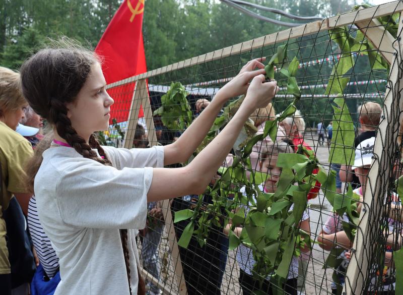 У беседки звучит песня Олега Газманова «Вперёд, Россия!», а ребятишки разучивают движения – танец пригодится им чуть позже, когда все отряды соберутся у главной сцены для флешмоба. Продолжает патриотическую линию станция «Письмо солдату». «Дорогой друг, вернись с победой!», «Мы гордимся тобой!» – пишут одни ребята участникам СВО, другие рисуют символы спецоперации «Z» и «V», третьи раскрашивают КАМАЗы. Все послания дойдут до бойцов через полевую почту. На столе соседнего домика лежат красные звёздочки и бумага. Согнуть здесь, перевернуть, соединить углы там, развернуть – так детишки делали себе пилотки. Не без участия взрослых, конечно, ведь нужно ещё в схеме разобраться!