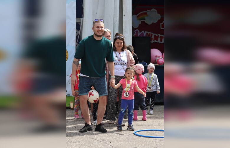 «Бег», «футбол», «вода» – детишки играют в ассоциации со словом «спорт» – это такая лёгкая разминка перед соревнованиями. А затем – «городки». Взрослые подбадривают промахнувшихся спортсменов: «Ты правильно бросила, только ниже целься», «Бросай слабее». Самые меткие участники празднуют попадания. Тут же игра «Накинь кольцо» – небольшие колечки должны оказаться на колышках. В третьем состязании дети сбивали большим мячом конусы – только успевай бегать за круглым!