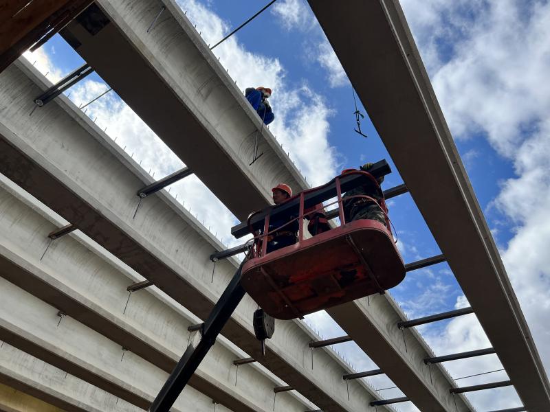 В рамках строительства шестипролетного моста через реку Челна протяженностью 166 метров специалисты приступили к устройству балок пролетного строения. После устройства монолитной плиты мостового полотна, мостострители устроят деформационные швы и уложат гидроизоляцию, которая защитит конструкции от коррозии. Затем здесь уложат двухслойный асфальтобетон толщиной 9 см, а также установят ограждения и освещение.