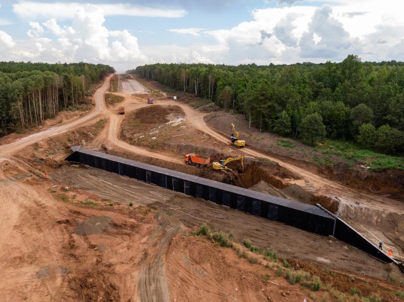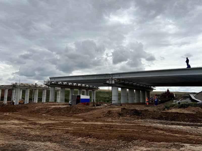Наибольший объем работ выполнен на участке строительства путепровода над автодорогой Новотроицкое – Комсомолец, его техническая готовность – 85%.