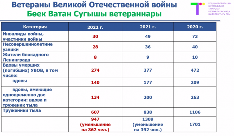 День Победы в этому году встретят на 362 ветерана Великой Отечественной войны меньше, чем годом ранее – в Челнах их осталось 947 человек, включая тружеников тыла и вдов погибших. Двое самых старших представителей военного поколения в прошлом году отметили свое столетие.