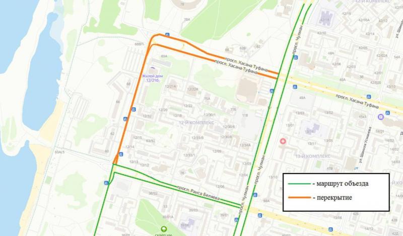 Раскольникова будет заблокирована от Туфана до проспекта Раиса Беляева. Администрация Набережных Челнов предлагает для объезда следующие маршруты: