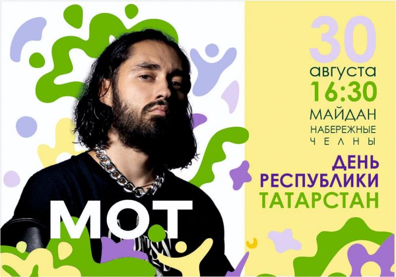 На празднование Дня республики, который Татарстан отметит 30 августа, власти Набережных Челнов пригласили арт-группу «Хор Турецкого» и лауреата премии «Золотой граммофон» рэп-исполнителя Матвея Мельникова, известного под сценическим псевдонимом Мот.