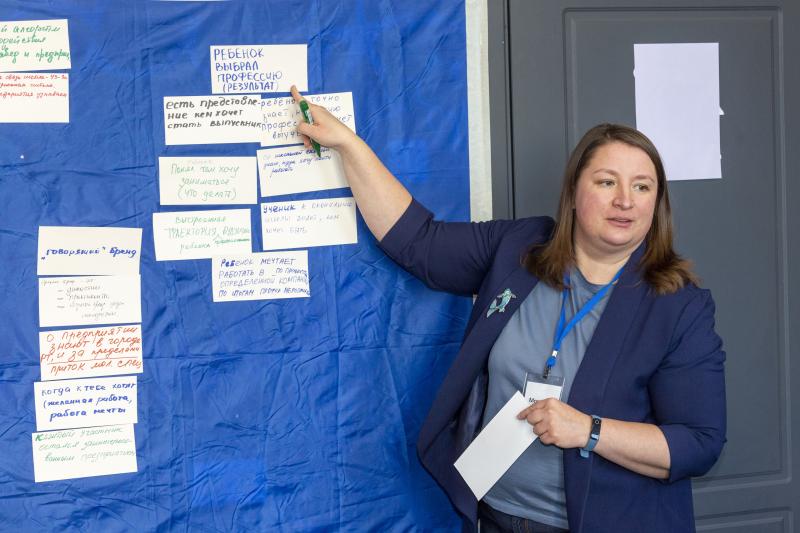Первое задание затруднений не вызвало, все участники определились быстро, что идеальная профориентация – это когда ребенок выбрал профессию. Ответ на второй вопрос о лучшем профориентационном мероприятии всколыхнул воспоминания. «Конечно, «PROFдвижение» – в нем и игры, и знакомство с профессией на рабочих местах, и защита проекта!» – настаивали одни. «Экскурсия на рабочие места родителей», – парировали другие. На сессии вспомнили и личный опыт знакомства с профессией в учебно-производственном комбинате, и фееричный «День КАМАЗа», и посещение руководителями родной школы. В итоге в перечень было включено 14 мероприятий, признанных службой персонала лучшими.
