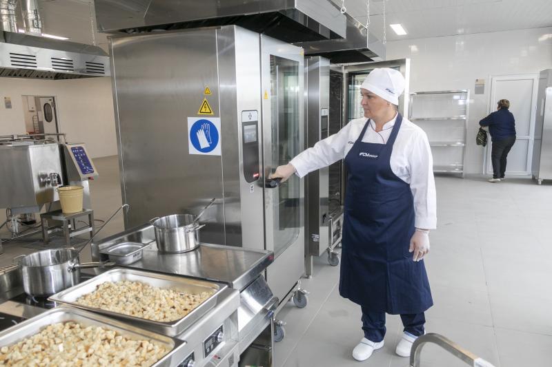 На кухне установлено новое поварское и холодильное оборудование. По словам завпроизводством столовой Резеды Феклистовой, с установкой новых пароконвектоматов, плит с индукцией, овощерезательных машин, миксеров и блендеров процесс готовки ускорился в разы. К примеру, если прежде котлеты готовились 40 минут, то сейчас - 20.