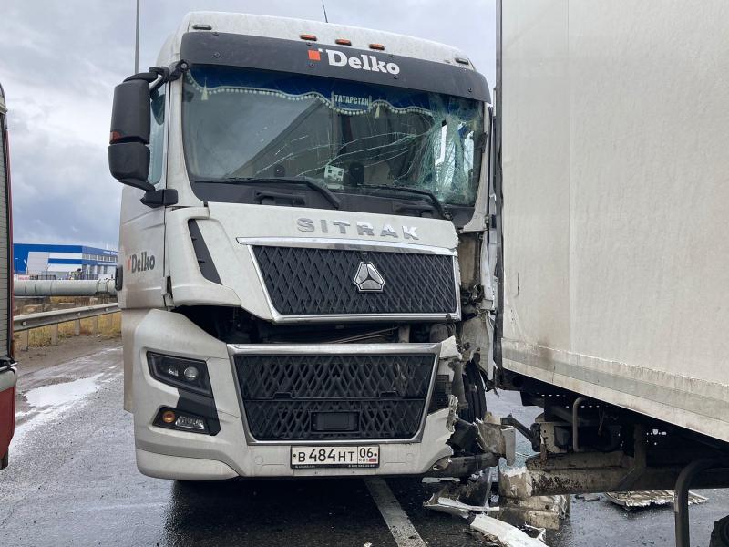 Авария произошла сегодня в обед. Первой ехал самосвал Shacman, за ним были две фуры. Наиболее серьезные повреждения получил автомобиль, находившийся посередине – его кабину вжало в кузов самосвала. В результате происшествия пострадал один водитель, о его состоянии пока не сообщается.