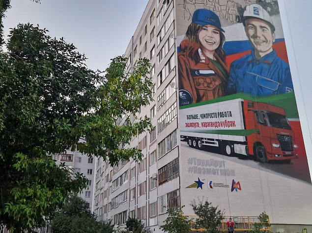 В Набережных Челнах на торце дома 32/06 завершают мурал, посвященный студенческим производственным отрядам «КАМАЗа». Рисунок появится в рамках программы капитального ремонта жилых домов.
