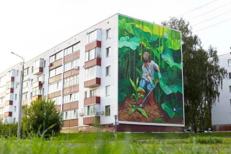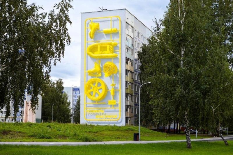 Новые муралы появились и в cоседнем Нижнекамске. При поддержке СИБУРа на торцах домов художники-граффитисты нарисовали мальчика-садовода и "конструктор" из товаров, которые изготавливаются из желтого полимера. Работа интересна тем, что она выполнена в технике 3D - создается иллюзия, будто коллаж не нарисован, а смонтирован на торец здания.