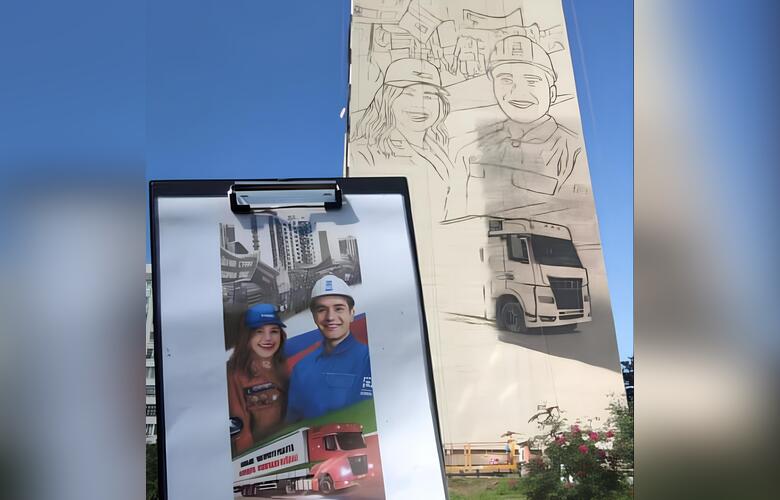 На граффити изображены парень и девушка в камазовской форме, а также грузовик с надписью на борту на татарском и русском языках: «Больше, чем просто работа. Эшләүгә, караганда күбрәк». В верхней части мурала можно увидеть рабочих на митинге и город в монохромном исполнении.